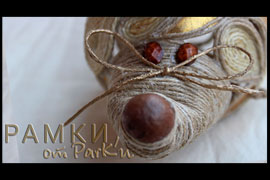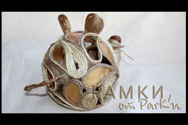 Материалы: шпагат джутовый и льняной, элементы декоративные акриловые, парча, скорлупа ореха макадамия, краска акриловая